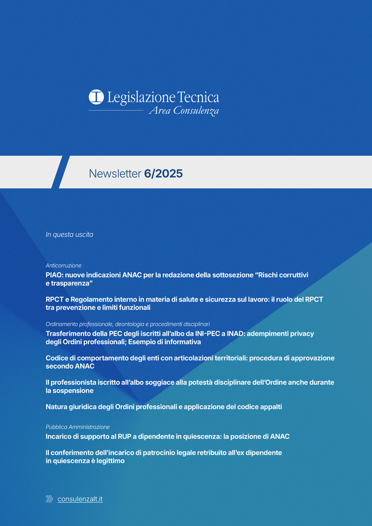 È stata appena pubblicata la Newsletter n. 6/2025 dell’Area Consulenza di Legislazione Tecnica.