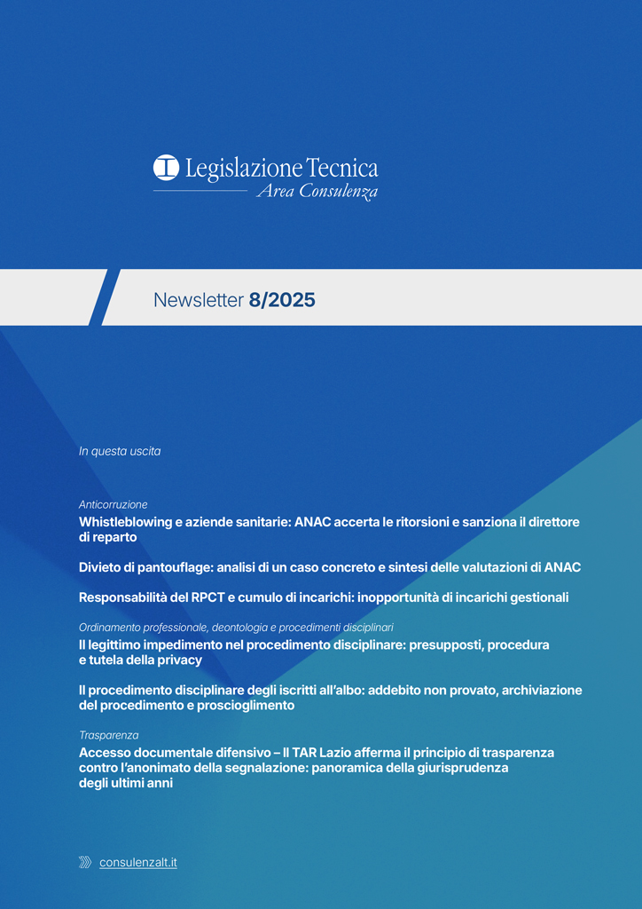 In questo numero sono forniti utili approfondimenti in materia di anticorruzione (applicazione della disciplina del whistleblowing in ambito sanitario, indicazioni operative di ANAC sull’applicabilità del divieto di pantouflage, limiti funzionali del RPCT), in tema di ordinamento professionale (applicazione del legittimo impedimento al procedimento disciplinare, le diverse modalità di conclusione del procedimento disciplinare e distinzione tra archiviazione e proscioglimento).
